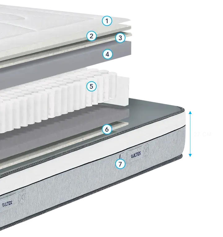 Le matelas hybride Vitalift (hauteur 27 cm), avec de la mousse à mémoire de forme, est conçu pour offrir un équilibre idéal entre fermeté et confort cocooning. Grâce à la combinaison des meilleures technologies - matière BULTEX® nano et ressorts ensachés - ce matelas garantit un confort ferme progressif. Un accueil enveloppant sur-mesure et à coeur, la matière BULTEX nano qui associée aux ressorts ensachés (580 ressorts en 140 x 190 cm), garantit un soutien précis et personnalisé, adapté à tous les gabarits. Ce matelas hybride assure une excellente indépendance de couchage. Chaque ressort fonctionne de manière autonome, absorbant les mouvements. Ainsi, même si votre partenaire bouge au cours de la nuit, votre sommeil reste profond et ininterrompu. Une véritable garantie de repos optimisé pour deux dormeurs, sans compromis sur le maintien. Un matelas zéro traitement composé de fibres du côté de la face de couchage, assurant une respirabilité optimale. De plus, l’ensemble de nos matelas sont labellisés OEKO-TEX® STANDARD 100, un label indépendant qui assure l’absence de substances nocives pour la santé et l’environnement.